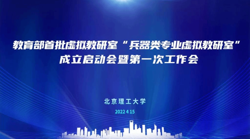 2022 年 4 月 15 日,兵器类专业虚拟教研室成立启动会暨第一次工作会以线上线下结合的方式成功召开。本次会议由北京理工大学机电学院主办,参与申报兵器类专业虚拟教研室的南京理工大学、中北大学、沈阳理工大学、长春理工大学、西安工业大学、安徽理工大学、西南科技大学、空军工程大学 8 所高校的相关领导、出版社及相关企业领导、专业虚拟教研室成员近 60 人线上线下参加会议。
