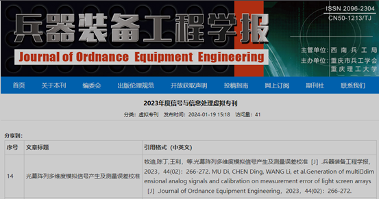 我院研究生发表论文被 优选收录进《兵器装备工程学报》信号与信息处理虚拟专刊