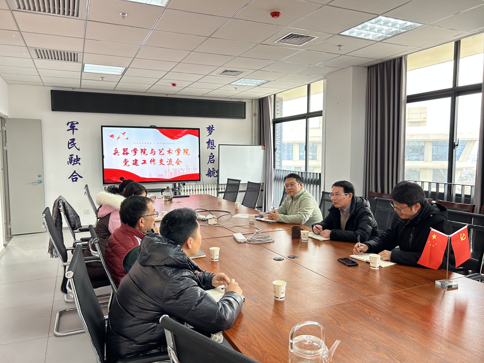2023年12月18日下午2:30分,亚洲国产精品无码观看久久党委书记蔡长龙、党委组织委员陈丁、辅导员王国栋与来访的艺术与传媒学院党委书记周著一行四人与在兵器学院8-615会议开展两院党建工作交流。