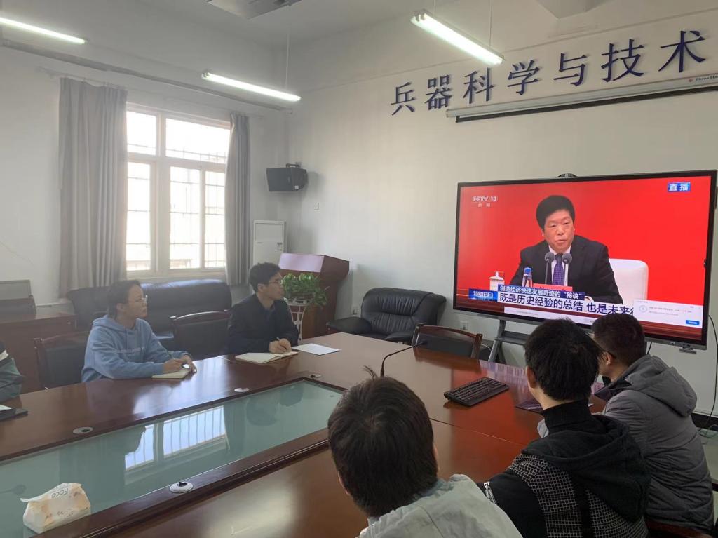 2021年11月12日上午10时,中共中央举行新闻发布会,介绍党的十九届六中全会精神,亚洲国产精品无码观看久久举行了视频观看学习讨论,会议由郭永春院长主持,学院教工支部和学生支部全体党员参加。