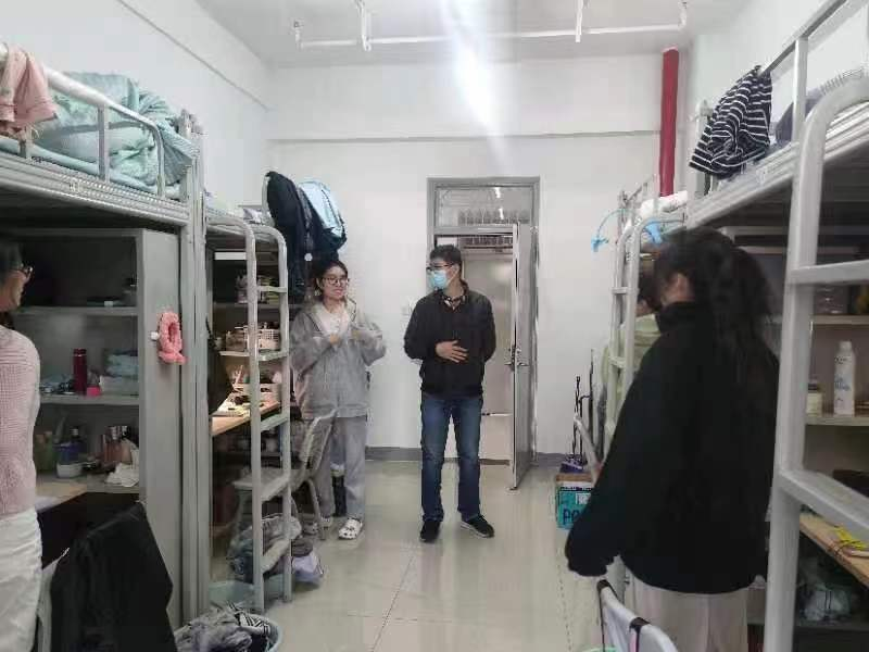 由于疫情形势一直严峻,学生在9月18返校以来,一直处于静态管理或封闭状态,学习生活受到了很大影响。由于核酸检测经常要做,而且很多时间是一大清早,时间早。往往影响了学生的1、2节网课,因此,学生中产生了一些不良的心理情绪。学院领导非常关心学生在宿舍的学习、生活和心理健康,安排辅导员王国栋到宿舍看望学生,送去学院对学生的关心和爱护。