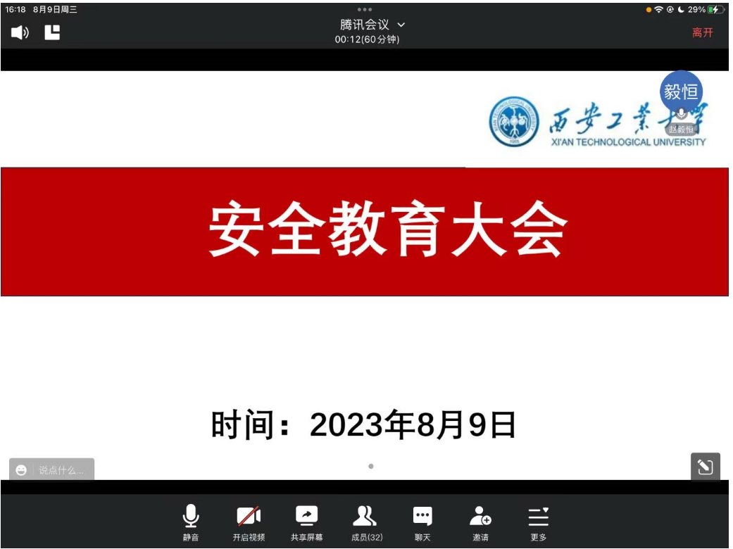 目前正值暑期,自然灾害频发、新型互联网诈骗手段层出不穷,为进一步加强大学生校内外人身财产安全意识,8月9-10日亚洲国产精品无码观看久久对全体学生开展了防汛防溺水、反电信诈骗与自身财产及出行安全线上教育培训,使同学们敲响了安全的警钟,增强自我安全防范技能,共同构建平安和谐校园!