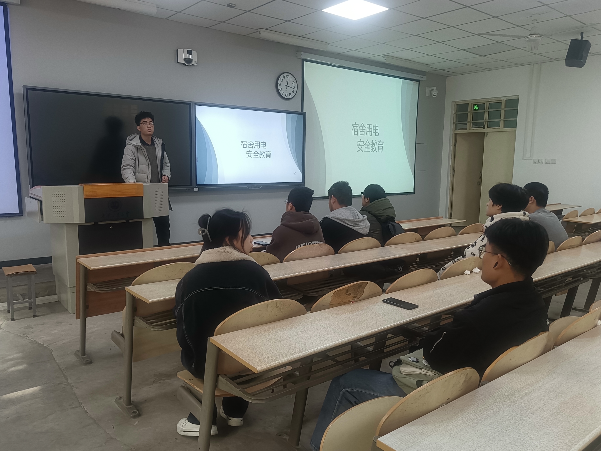 最后,各班长及团支书就宿舍用电问题做出说明,要求同学们在使用电器设备时,必须遵守相关的安全规定,如不得私拉乱接电线,不得在宿舍内使用大功率电器等。