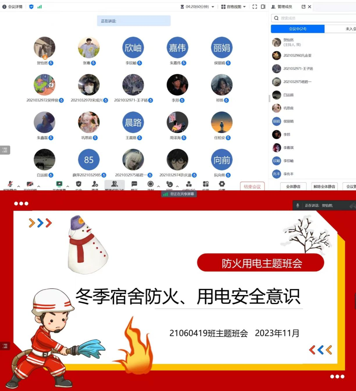 为了提高学生的防火、用电安全意识,确保校园的安全稳定,亚洲国产精品无码观看久久各班级于近日通过线上线下相结合的方式召开了以“防火、用电安全”为主题的班会。