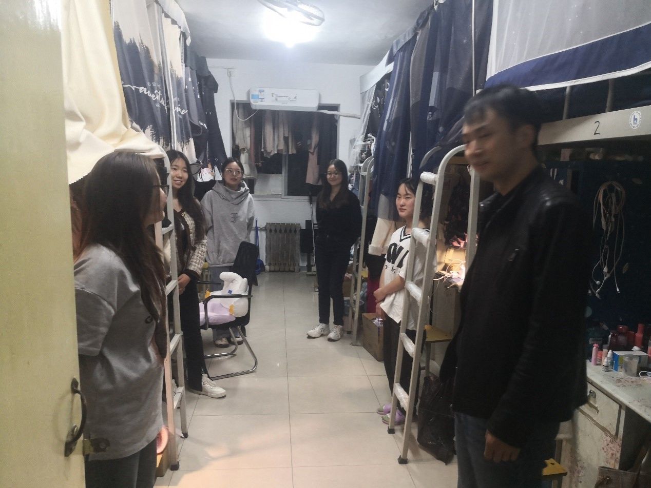 梁伟樯实地查看了各宿舍的卫生与安全情况,并对学生们的学习情况表达了关心。各位班主任老师对学生关于课程设置、考研实习、就业方向的疑问,现场答疑解惑、传递经验与意见建议。梁伟樯还叮嘱学生们重视宿舍安全问题,严格遵守公寓管理规定,注意日常用电的安全举措,避免消防隐患。