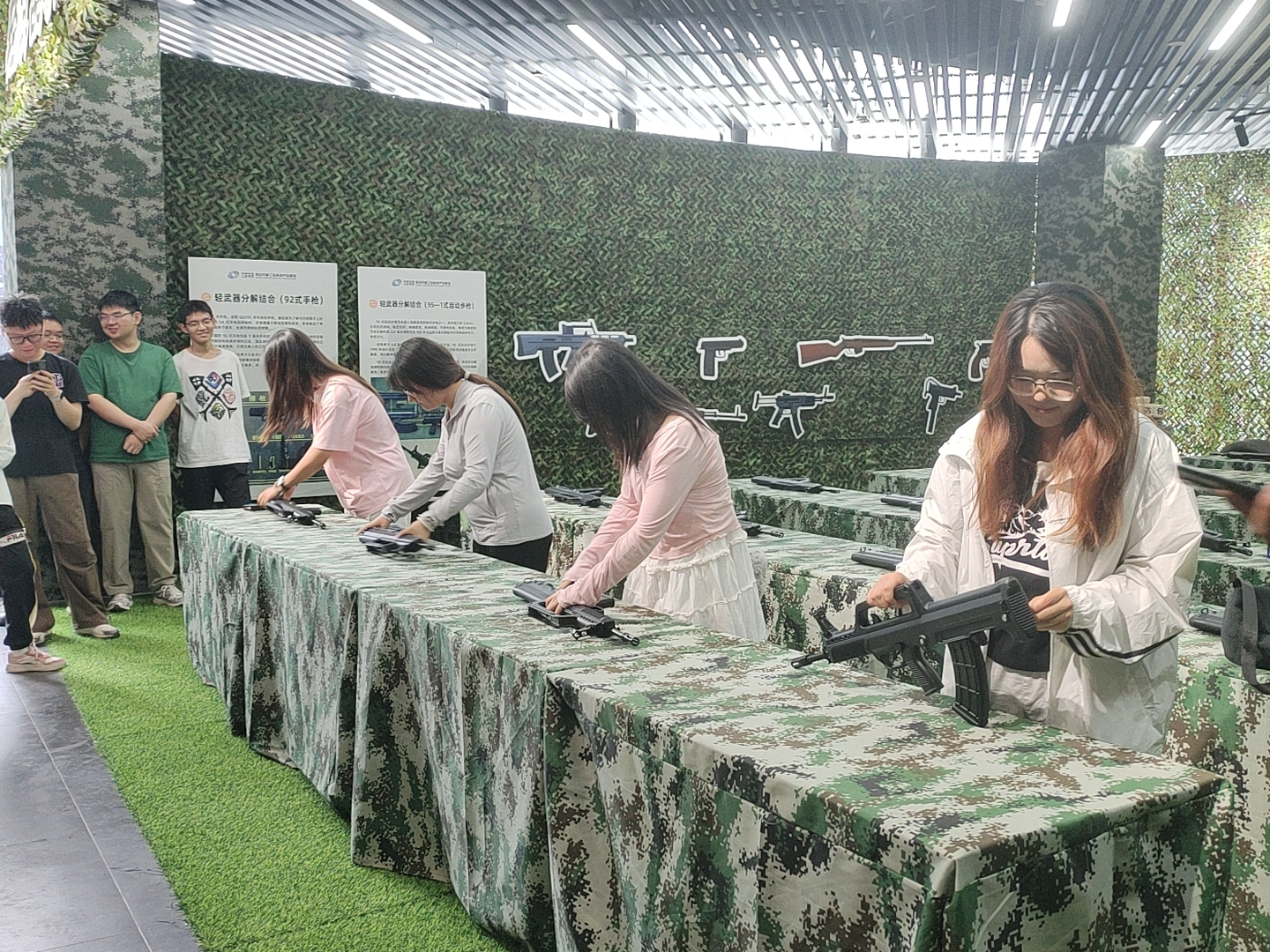 随后,博物馆特别设置了互动体验区,让学生们有机会亲手触摸并操作仿真枪械。在专业人员的指导下,学生们认真学习了枪械的基本构造、拆卸步骤和组装技巧。完成枪械的装卸体验后,同学们来到了模拟射击区。这里配备了先进的模拟射击设备,能够高度还原真实射击的场景和感受。在专业人员的指导下,同学们依次进行模拟射击体验。通过亲身体验枪械的装卸以及模拟射击,学生们不仅对枪械的构造和操作有了更深刻的理解,还体会到了兵器科学与技术的实际应用。这种亲身体验让他们更加直观地感受到兵器的精密性和复杂性。