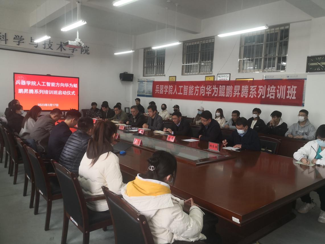 2023年3月17日下午2:30分,亚洲国产精品无码观看久久与华为集团合作开展的华为鲲鹏昇腾工程师培训班开班仪式在学院会议室工6-504成功举行。华为鲲鹏创新中心CTO谷羽新,华为生态发展部教育行业代表苏珂,华为云学院主讲教师祁元、王德祥,兵器学院院长郭永春、副院长蔡长龙,本科生院副院长兰小毅,兵器学院院长助理、人工智能系主任吴杰、副主任王增,探测制导与控制技术系主任霍文俊、副主任胡良谋及兵器学院2021级人工智能和探测制导与控制技术专业40余名学生参加了开办仪式。开班仪式由兵器学院副院长蔡长龙主持。