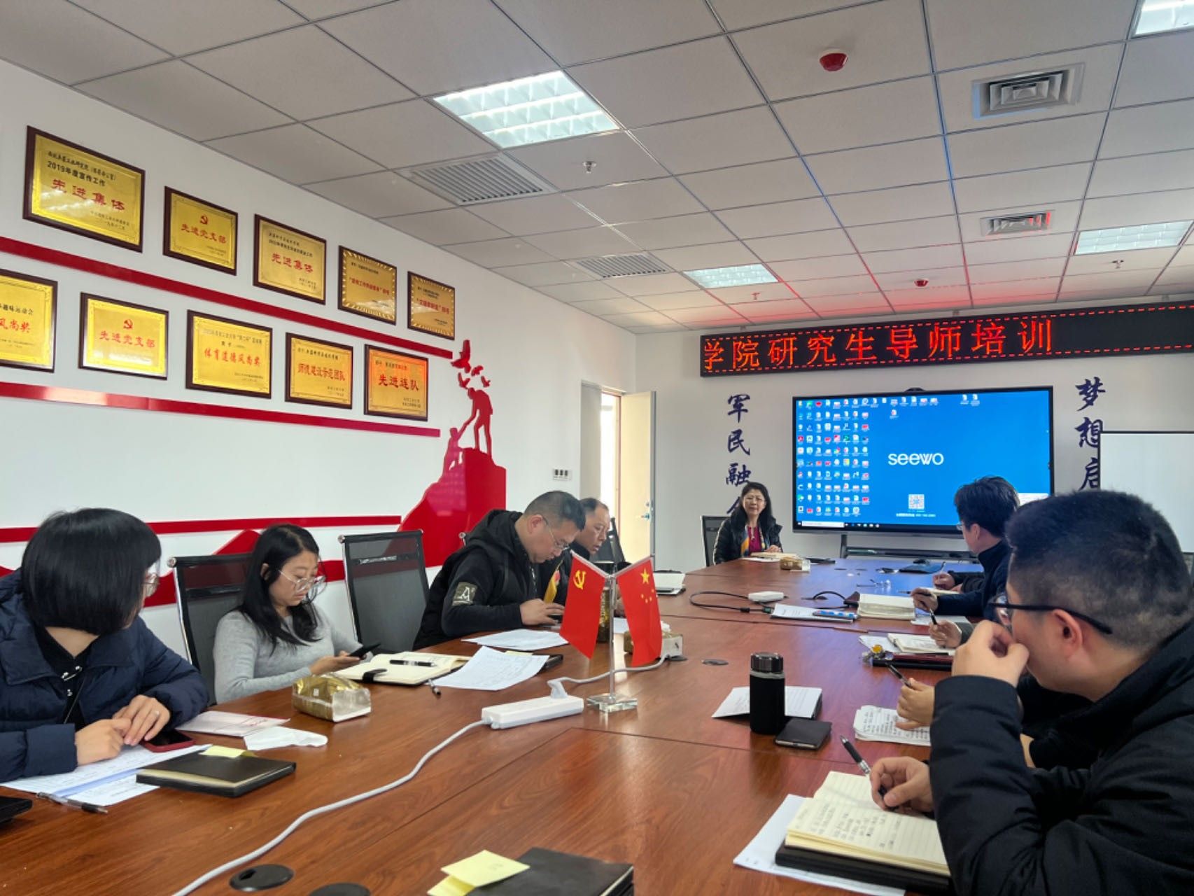 为全面落实研究生导师立德树人根本任务,推动导师队伍质量提升,1月11日兵器学院组织开展了研究生导师培训工作,培训会邀请我院王春阳教授做了题为“如何做合格的导师”的报告,全体指导教师参加了培训。