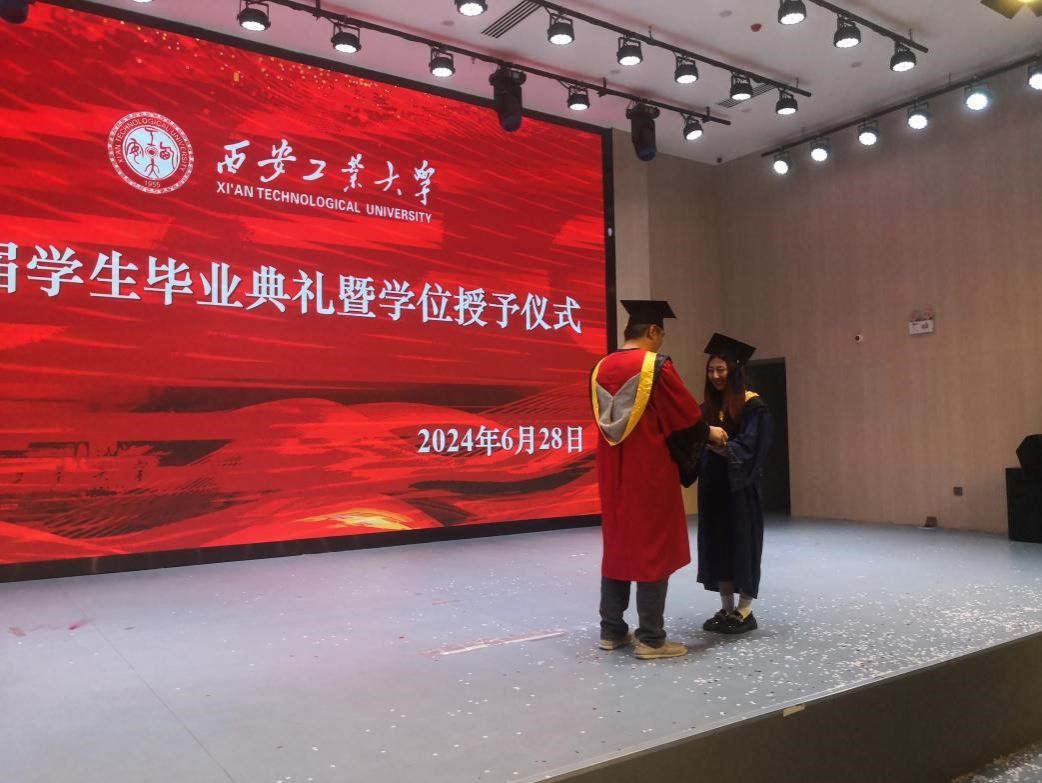 大会进行第二项,霍文俊教授向2021级毕业生学位获得者授予学位,受礼学生着学位服接受拨穗并合影留念。